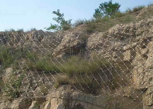 TECCO網(wǎng)系統(tǒng)是主動(dòng)防護(hù)系統(tǒng)的一個(gè)特殊的分支,它具有比普通主動(dòng)防護(hù)系統(tǒng)所用隔柵網(wǎng)強(qiáng)度更高的特點(diǎn)。同樣適用于緊靠建筑設(shè)施旁(無緩沖地帶)的風(fēng)化剝落坡面,采用覆蓋固定式:預(yù)應(yīng)力使山坡成為一個(gè)牢固的整體,把災(zāi)害消滅在萌芽狀態(tài)。它的大孔間距使邊坡綠化更加容易,利于種植更大型的植被,使所防護(hù)邊坡更加美化。